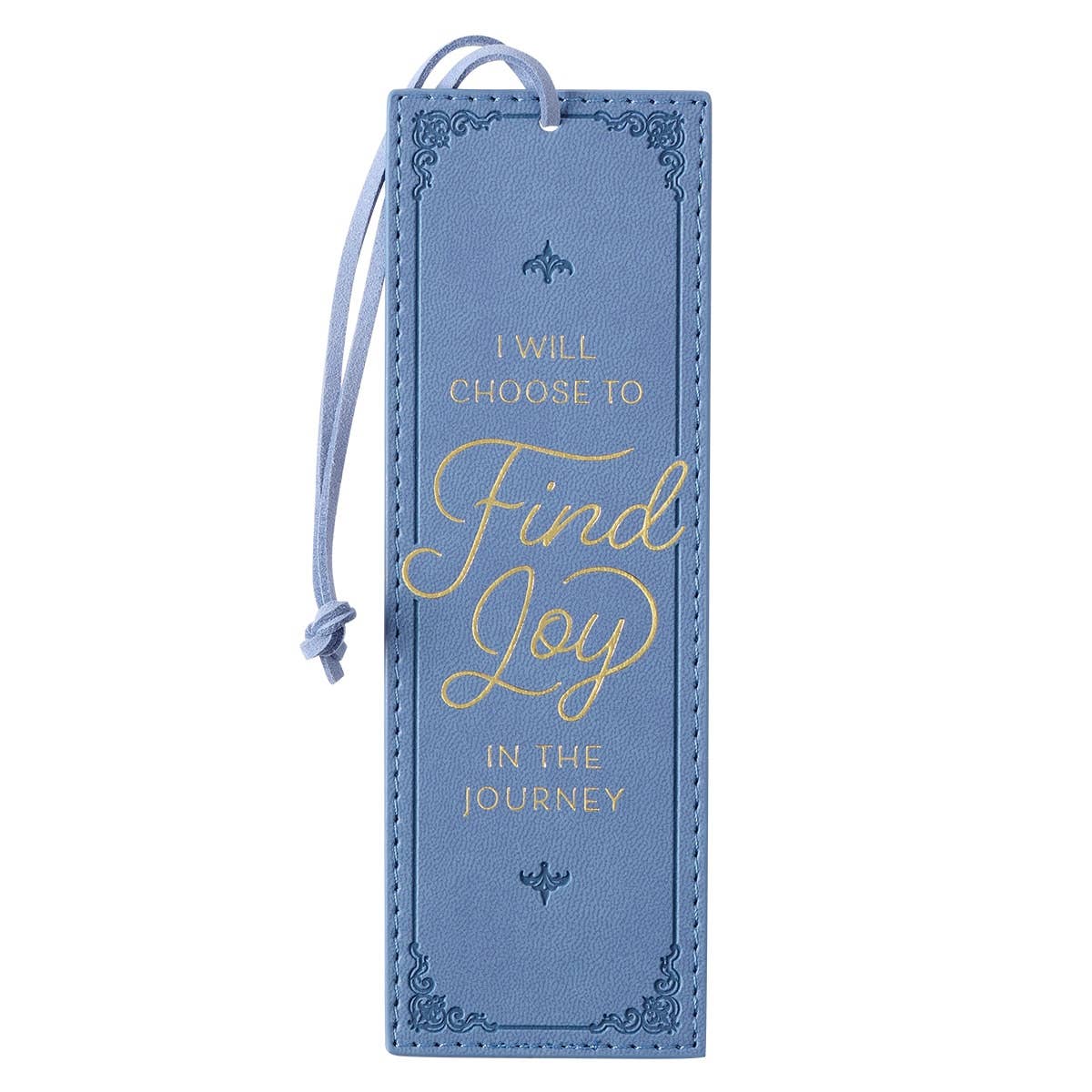 Let the Find Joy in the Journey Blue Faux Leather Bookmark remind you that joy is a choice you make every day. Avoid those dog-ears and page blemishes by using this bookmark, and it will remind you to find pleasure in everything as you read!