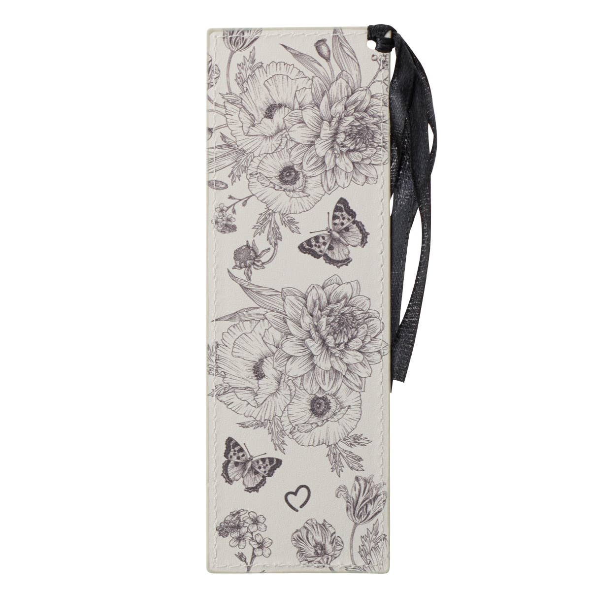 Let the lovely little things of life fill your heart with gratitude, and use the elegant Garden Notes Gray Faux Leather Bookmark to remind you to give thanks for them all. Heat-debossed flower pot and butterfly design, Gold foil, white and black accents, Gray faux leather, Heat-debossed sentiment, Gratitude turns what we have into enough, Attached black satin ribbon, Printed floral design on back, Smooth matte finish, Individually packaged in PVC pouch, Hanging tab, Size: 6.5” x 2.2” x 0.1” (165 x 56 x 3 mm)