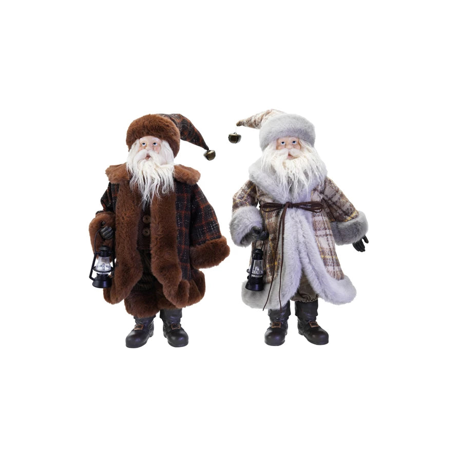 Faux Fur Fabric & Resin Santa With Lantern, 2 Style Options