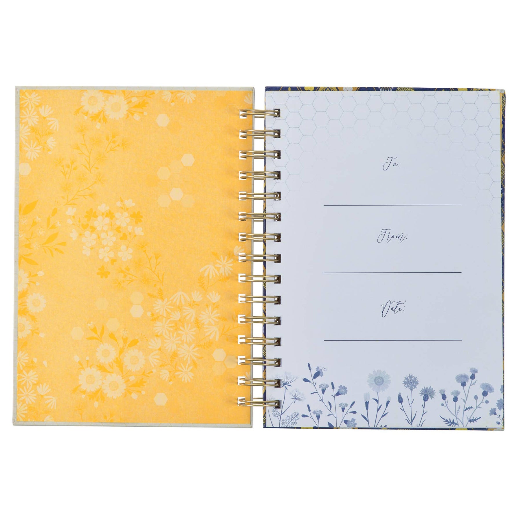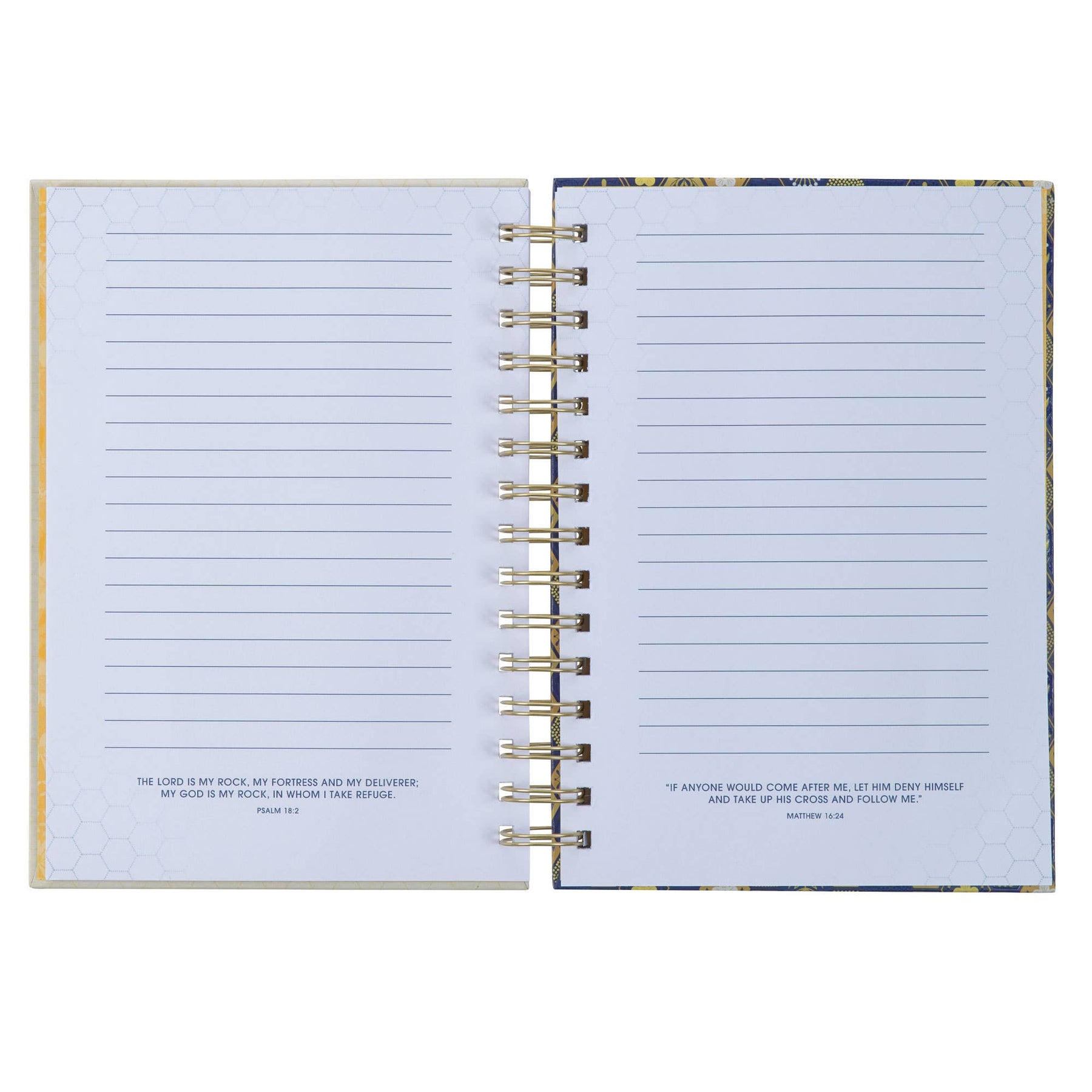 The Kind Words are Like Honey Wirebound Journal serves as a beautiful reminder that kindness is a choice we make daily. While our world may not always feel friendly, choosing to be kind can positively impact your life and those around you. This journal offers an opportunity to reflect on your day or week, record instances of kindness you've encountered, and brainstorm ideas for showing kindness to others.  Gold-foiled honeycomb and flower design, Navy and gold-foiled title, Kind words are like honey, sweet to the soul, Proverbs 16:24, Kindness is Like Honey Collection, Large hardcover journal, Wirebound journal, 192 lined pages, Full-color cover, Packaged in self-seal bag, Presentation page, Size: 8.4” x 6.4” x 1” (213 x 163 x 25 mm)