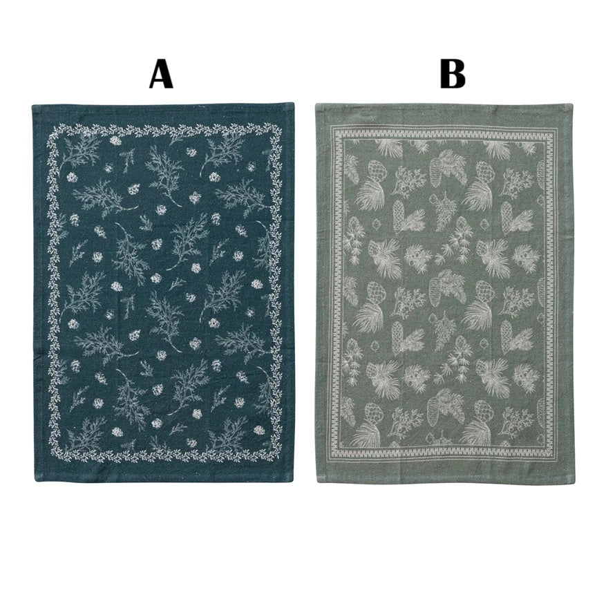 Linen Printed Tea Towel With Pine Bough Pattern, 2 Style Options