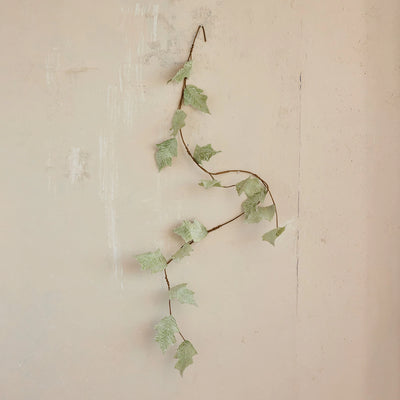 72" Faux Leaf Garland With Glitter, Icy Mint