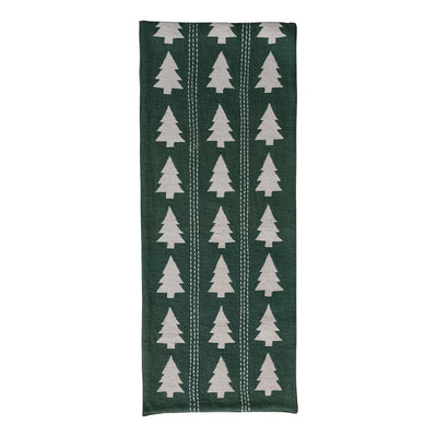 72" Slub Table Runner With Trees Pattern, Embroidery & Stitching, Green & Natural