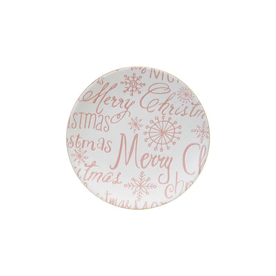 "Merry Christmas" Round Stoneware Dish With Gold Color Rim