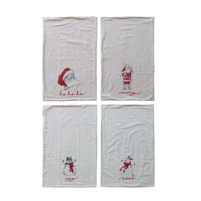 Printed Snowman/Santa Image, Embroidered Holiday Word & Terry Cloth Back Kitchen Tea Towel, 4 Style Options