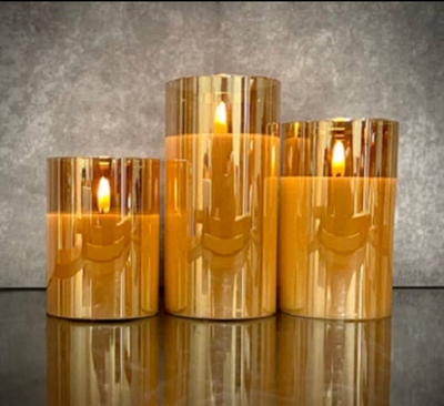Radiance "Classic" LED Poured Candle, Champagne, 3” Dia, 4 Size Options