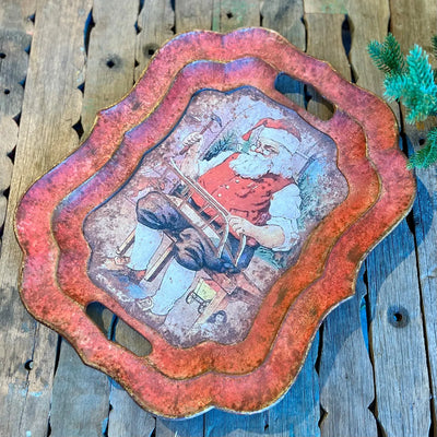 Vintage Look Santa In Workshop Tray by Porch View Home
