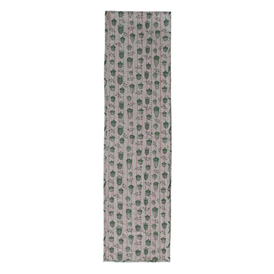 108" Printed 2-Sided Table Runner With Acorn/Plaid Pattern & Hand-Embroidered Kantha Stitch