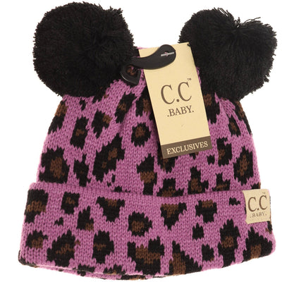 Baby Leopard Double Pom Beanie BABY80POMPOM: New Lavender