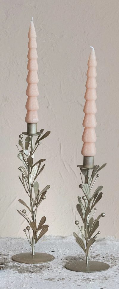 Metal Taper Candle Holder With Leaves & Berries, Distressed Pewter Finish, 2 Size Options