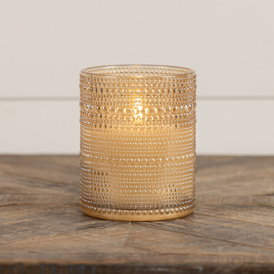 Dotted Glass 3D Flameless Candle, Champagne, 4 x 5" T