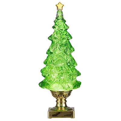 14" Lighted Green Christmas Tree With Swirling Glitter