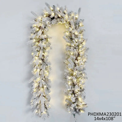 9' Lit & Flocked Balsam Fir Garland by Porch View Home