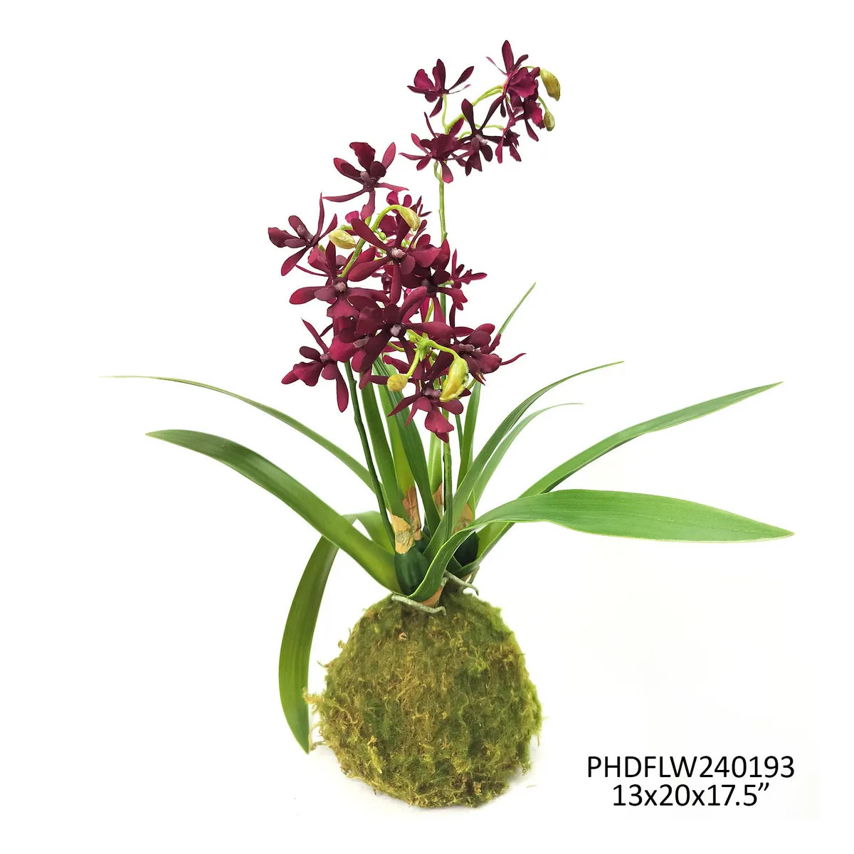 Mini Orchid Moss Ball, Large, Maroon by Porch View Home
