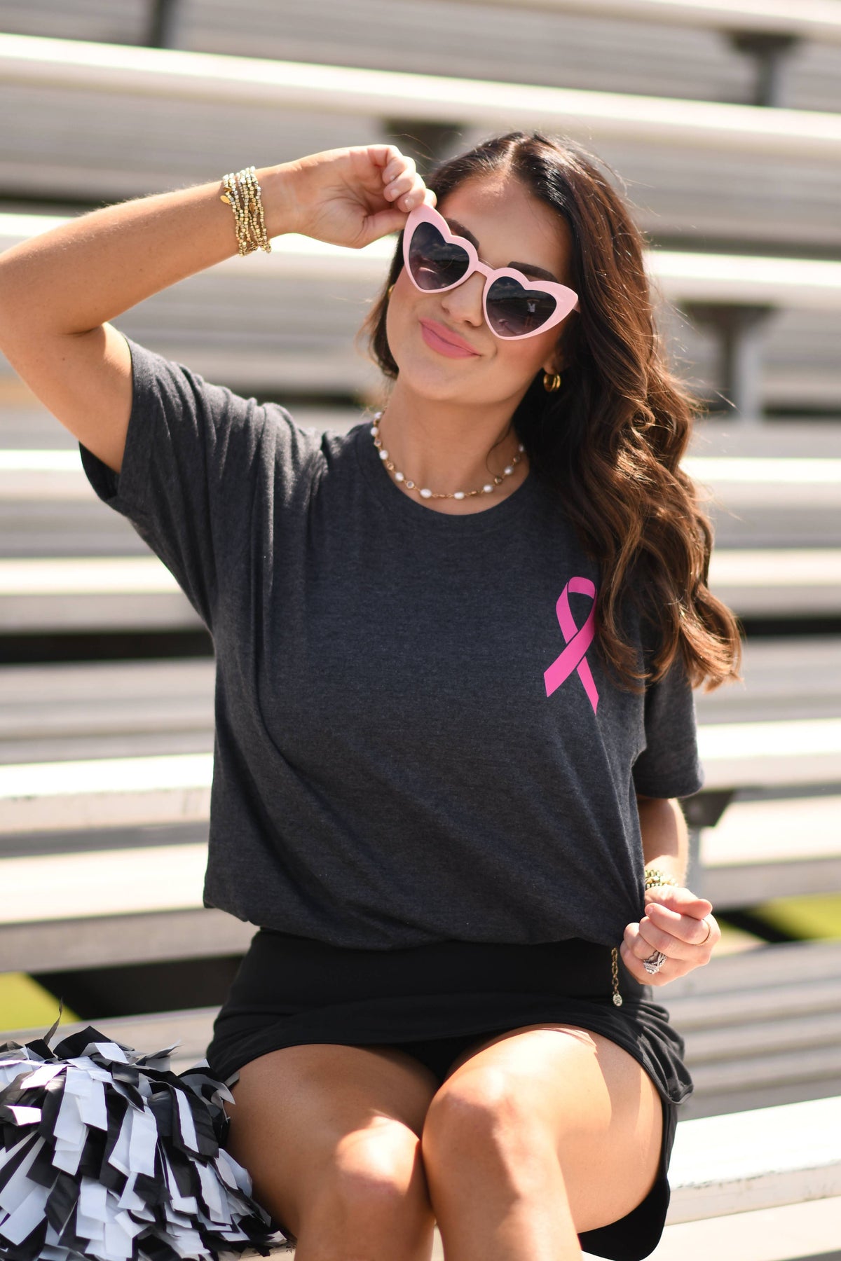 "October We Wear Pink" Tee, Heather Graphite, Small