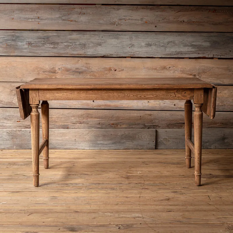 Elevate your dining experience with the Jefferson Drop Leaf Dining Table. The beautifully textured old elm top exudes classic formality and rustic charm. Save space with its two drop leaves while effortlessly adding a touch of elegance to any room.