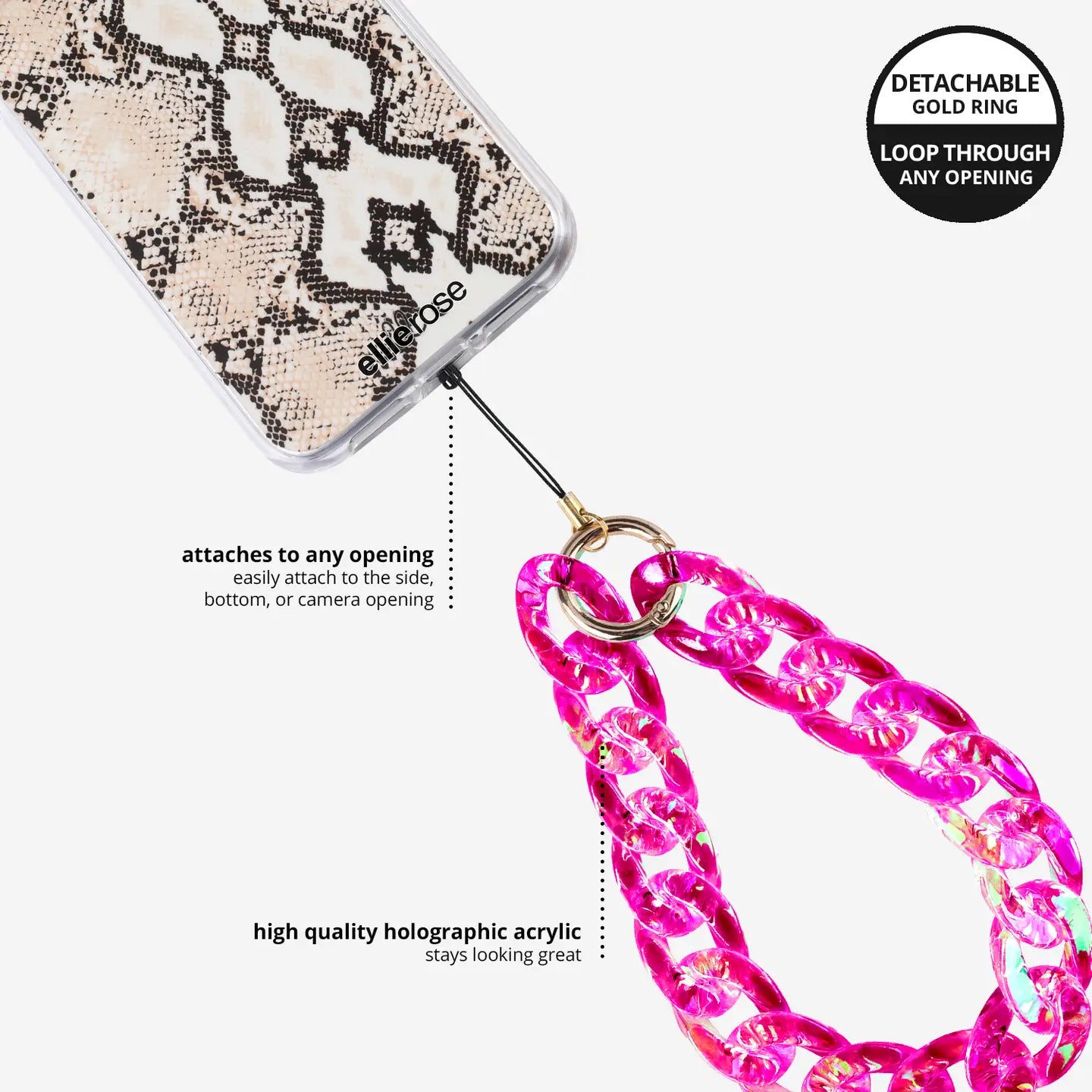 Phone Wristlet Charm, Magenta Hot Pink Holographic by Ellie Rose