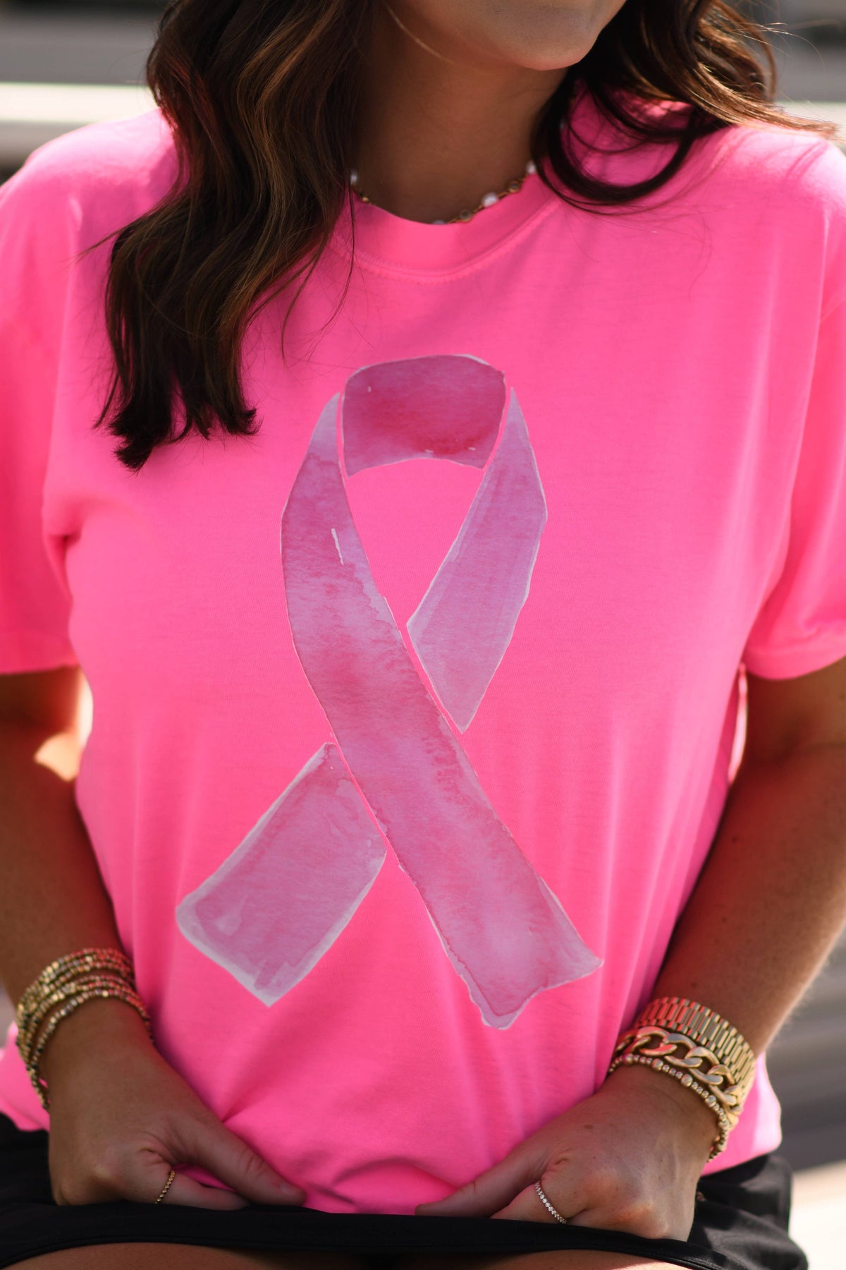 Watercolor "Pink Out" Ribbon Tee, Neon Pink, Medium
