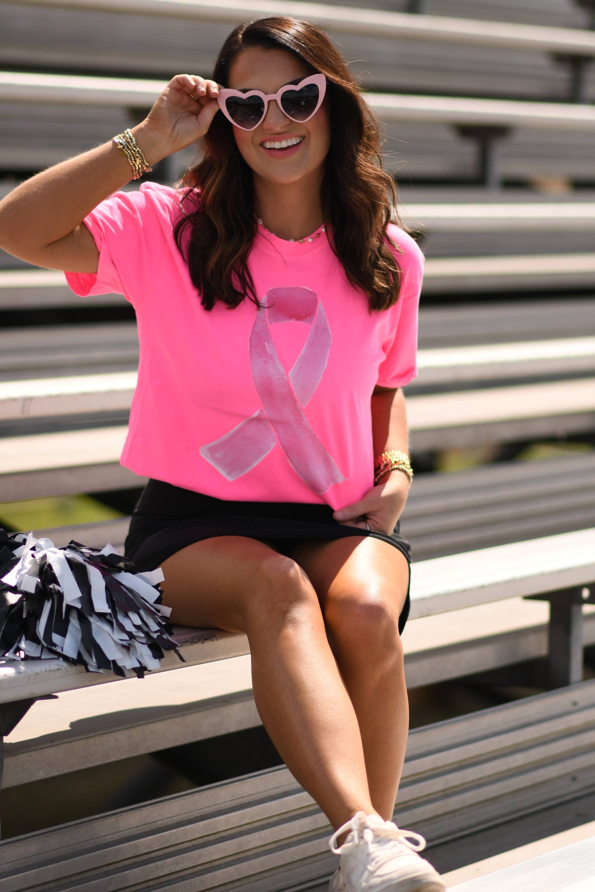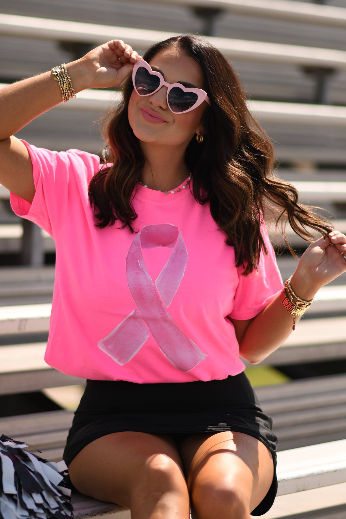 Watercolor "Pink Out" Ribbon Tee, Neon Pink, Small