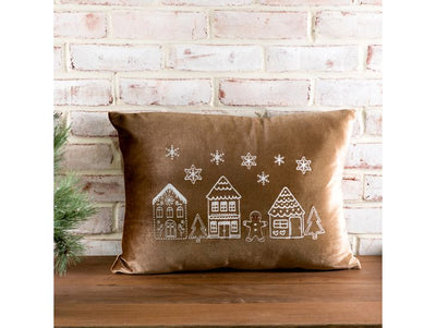 Gingerbread House Velvet Pillow, Beige