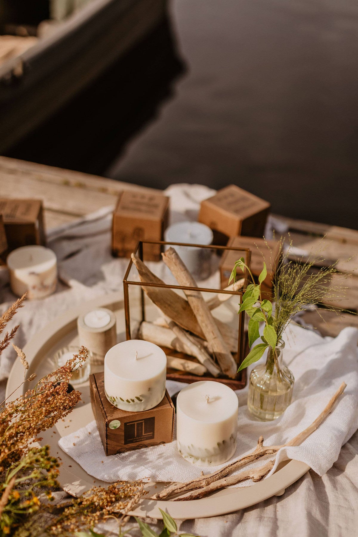 The invigorating lemongrass, joyful citronella and restorative Litsea Cubeba merge creating unique natural scent bouquet. This scent not only uplifts mood, but also helps to focus and improves brain function. Added bonus - it helps to keep mosquitoes away. Ingredients: natural soy wax, lead-free cotton wick, fern leaves, essential oils. Fragrance: Lemongrass with notes of Citronella and Litesea Cubeba 100% Eco product . Pesticide and carcinogenic substance free. Soy wax is GMO free. Occasion- Everyday Aesthetic- Minimalist Care instruction- 1. When burning natural soy wax for the first time, it should be burned up to 3 hours, so a wax pool is formed. This way ensuring that the candle burns out evenly. 2.Recommended wick length – no longer than 1 cm 3.For flame to burn brighter and longer, candle should be put out once in a while