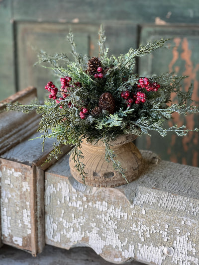 Icy Mini Pinecone With Berries Half Sphere, 7”