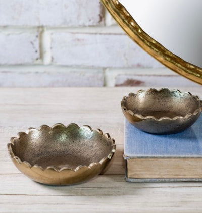 Round Decorative Cast Aluminum Bowl, Brass Finish, 3 Size Options