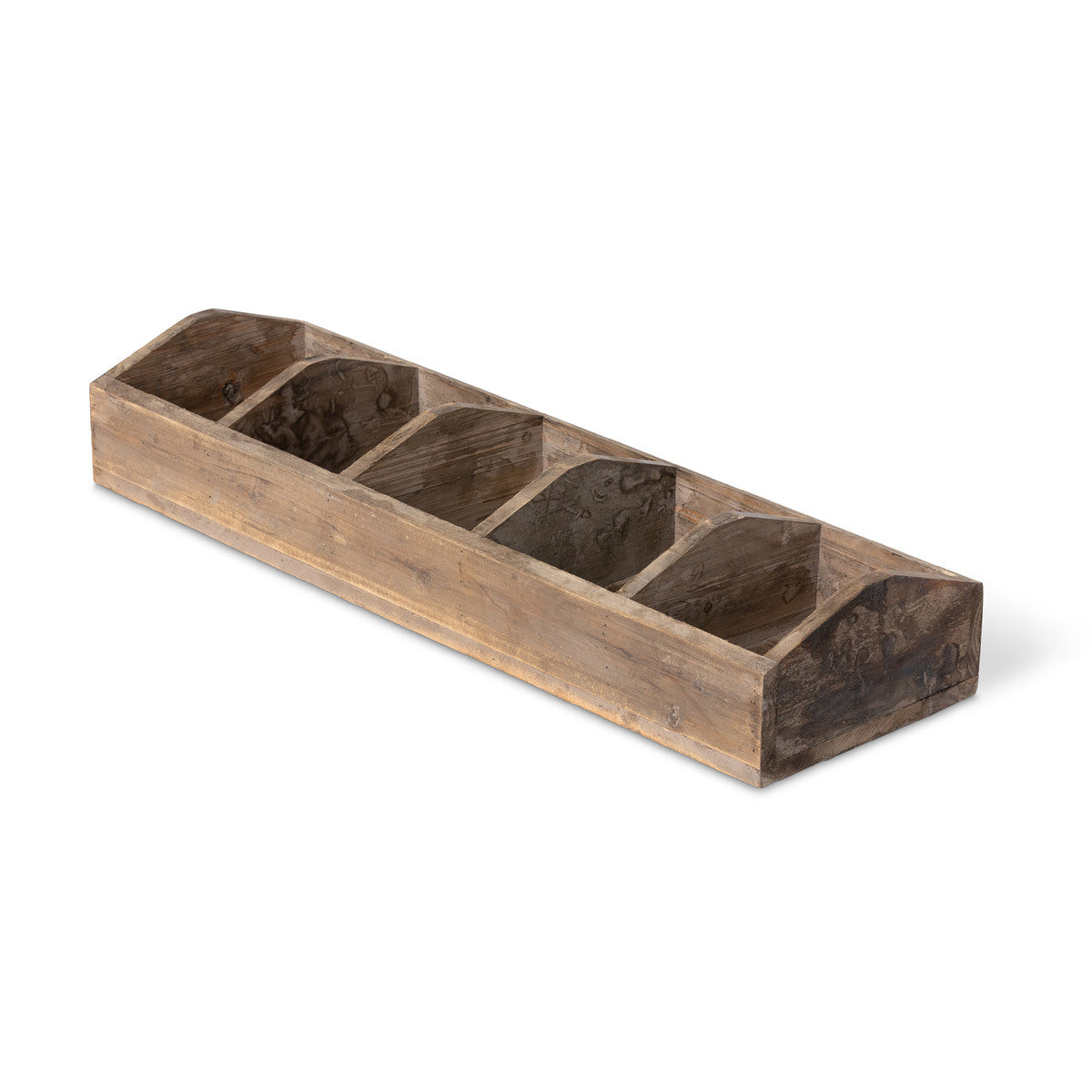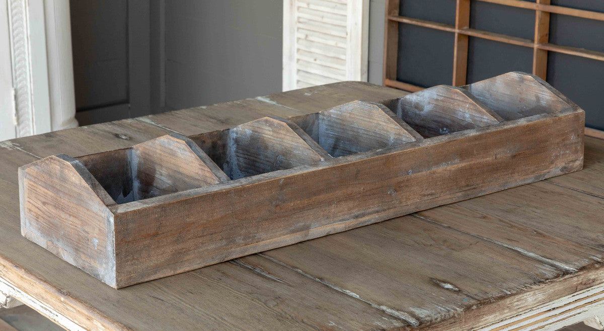 Featuring five wide compartments, use this divided wooden display box to showcase your favorite dishes.