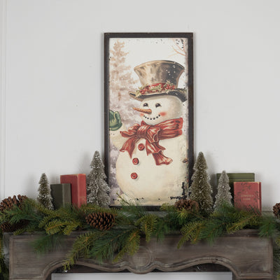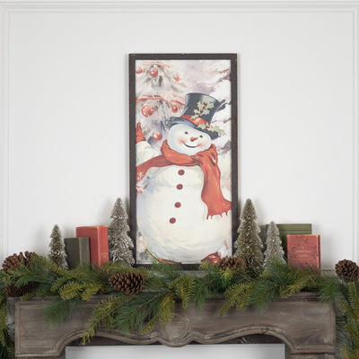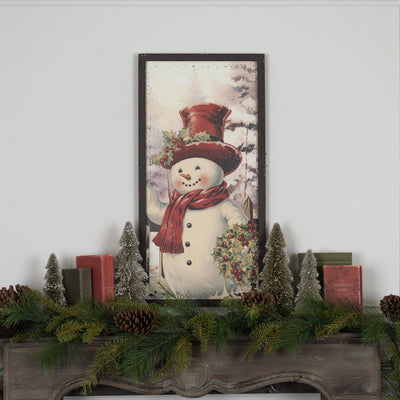 Snowman With Holly Wreath Print