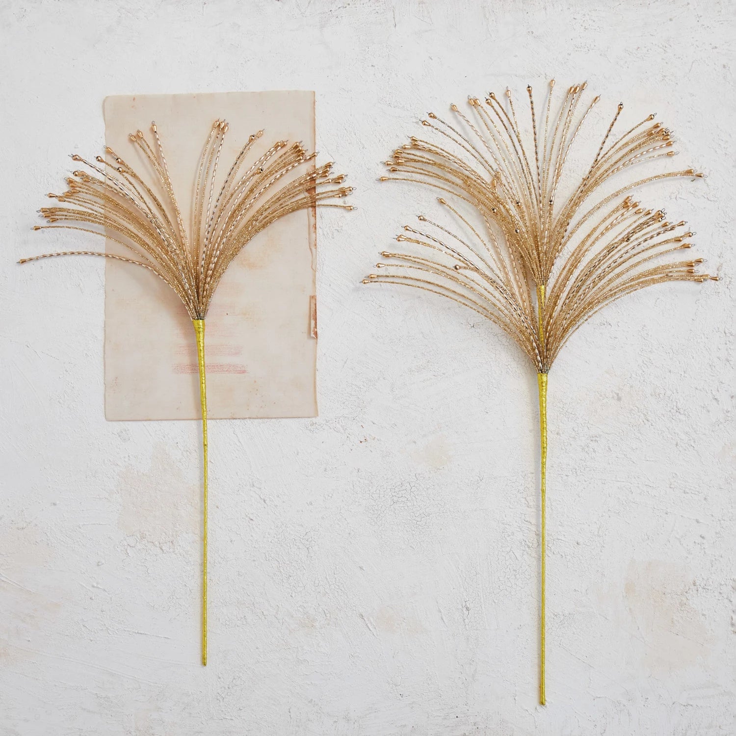 22" Acrylic & Glass Beaded Metal Spray, Gold Finish