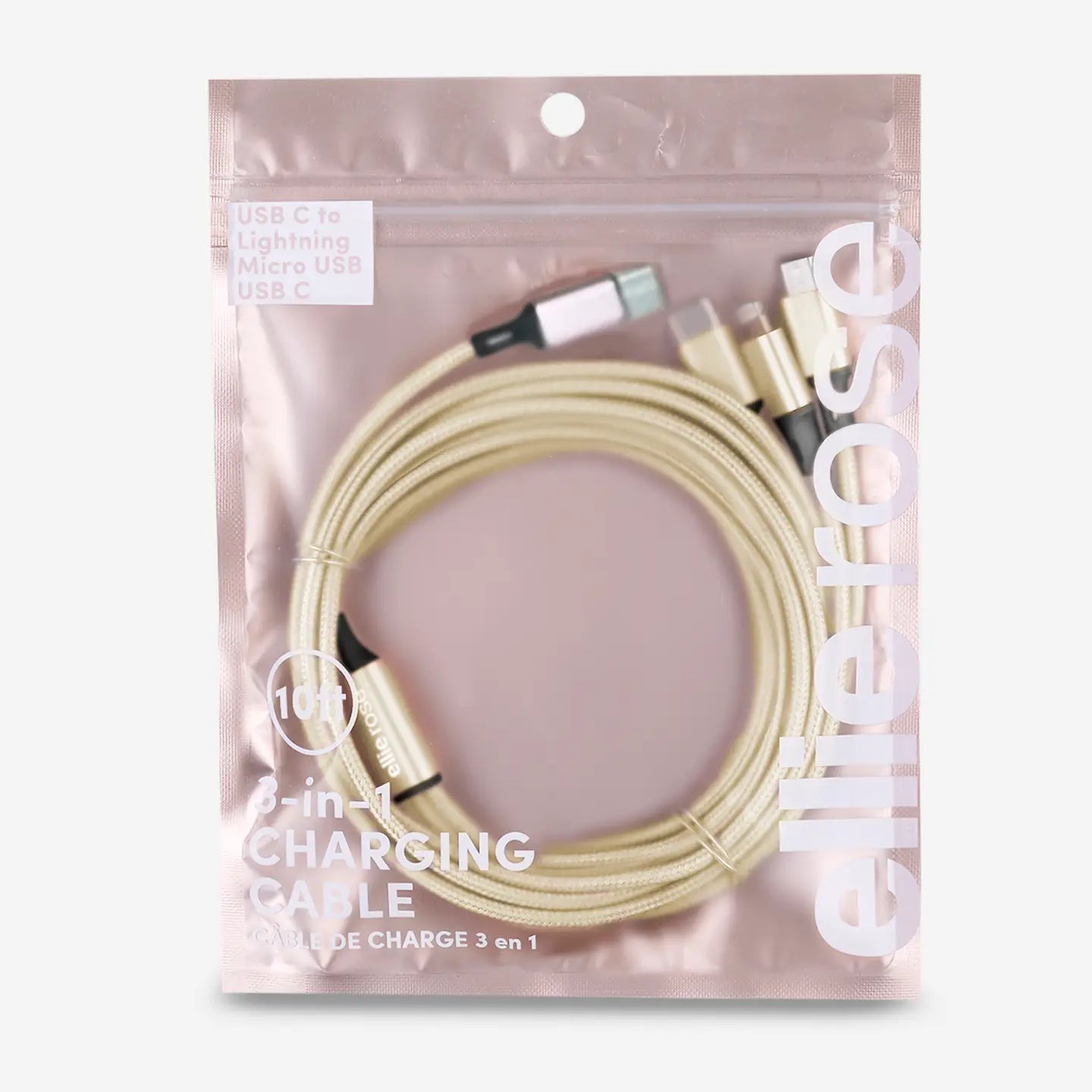 3-in-1 Charging Cable, 10 ft, Gold, USB-C by Ellie Rose