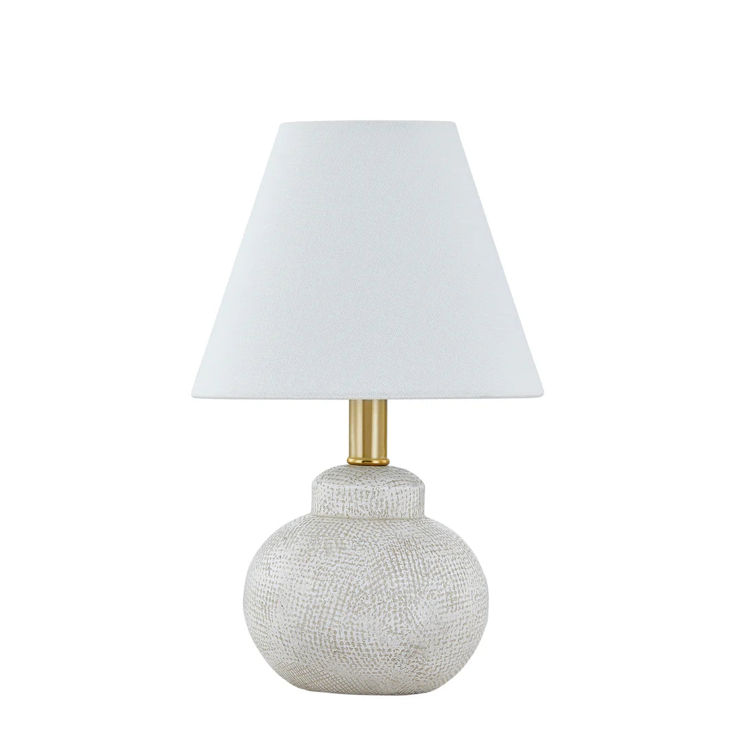 Ada's distinctive shape and texture make it a standout in any setting, while its neutral white with grey undertones adds a serene aesthetic. This contemporary lamp has an abundance of depth, texture, and high-end style all in a small frame. Complemented by gold hardware and an empire shade, Ada will quickly become your favorite piece. Its smaller frame makes it ideal for those small nooks that need a little added light.