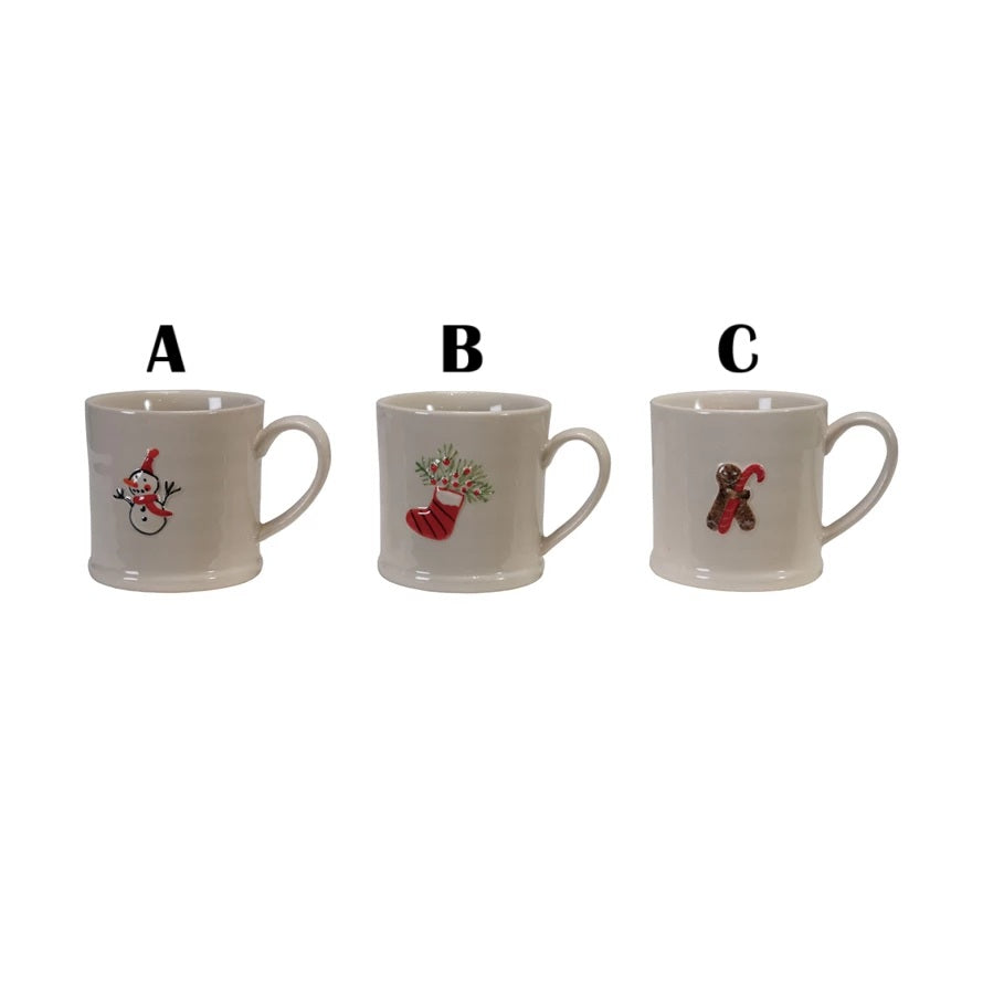 Embossed Stoneware Mug With Holiday Icon Figure, 3 Style Options