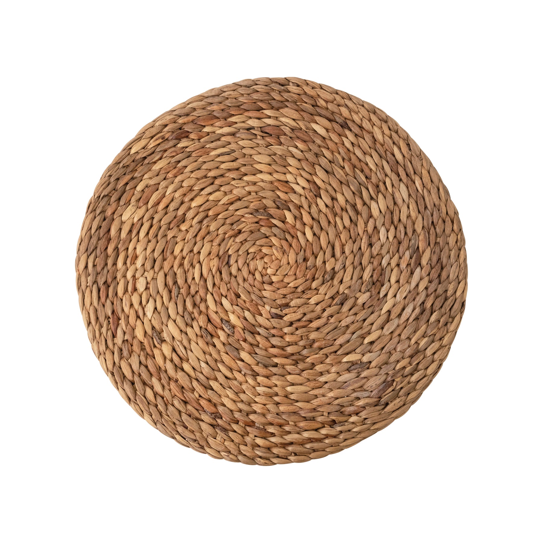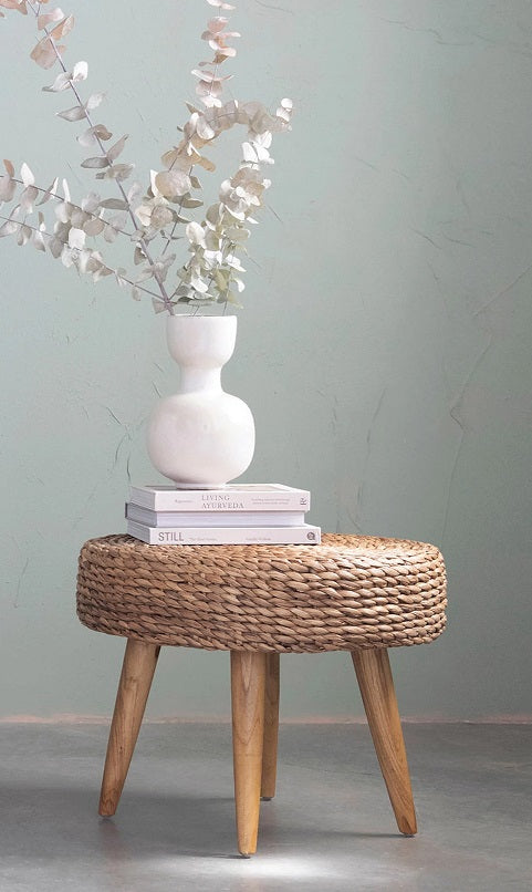 Hand-Woven Water Hyacinth & Teakwood Stool, Natural
