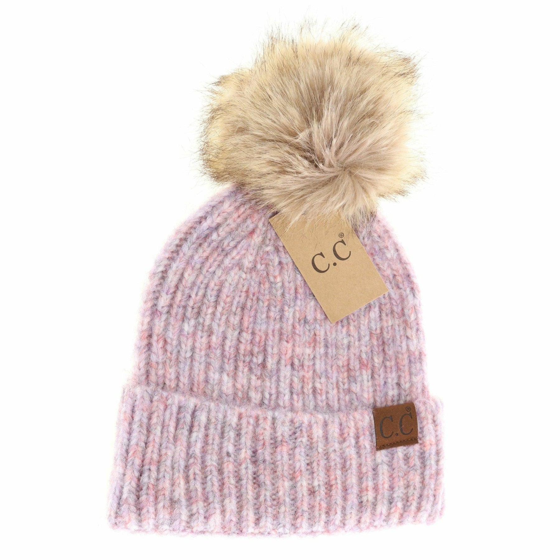 This easy and classic ribbed beanie is soft and muted. Dyed in soft multi-tone yarn with the addition of a faux fur pom, you are going to want this hat in every color! Compliments scarf in style SF2074 gloves in G2074P.