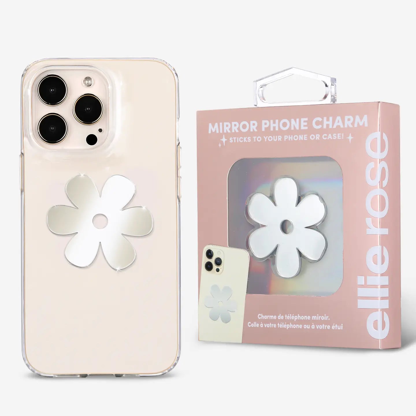 This flower-shaped phone mirror easily applies to the back of your phone or phone case with super strong adhesive. Perfect for on-the-go touch ups to make sure you’re totally selfie ready! Shaped in a cute flower outline, this mirror decal features an anti-scratch coating to maintain the highly reflective surface. Compatible with nearly all smartphones, tablets, and other mobile devices! Stay looking #flawless in photos and IRL! Easy application – simply remove the protective backing and apply to your clean and dry phone or phone case. Press firmly for several seconds to cure the application. Sticks to smooth, hard, flat surfaces only. Not for use with silicone or textured phone cases. Mirror decal can be removed. • Peel and Stick – easy application! • Strong adhesive keeps your mirror firmly attached to your phone or case • Removable • Made of durable polycarbonate • Compatible with most smartphones and smartphone cases
