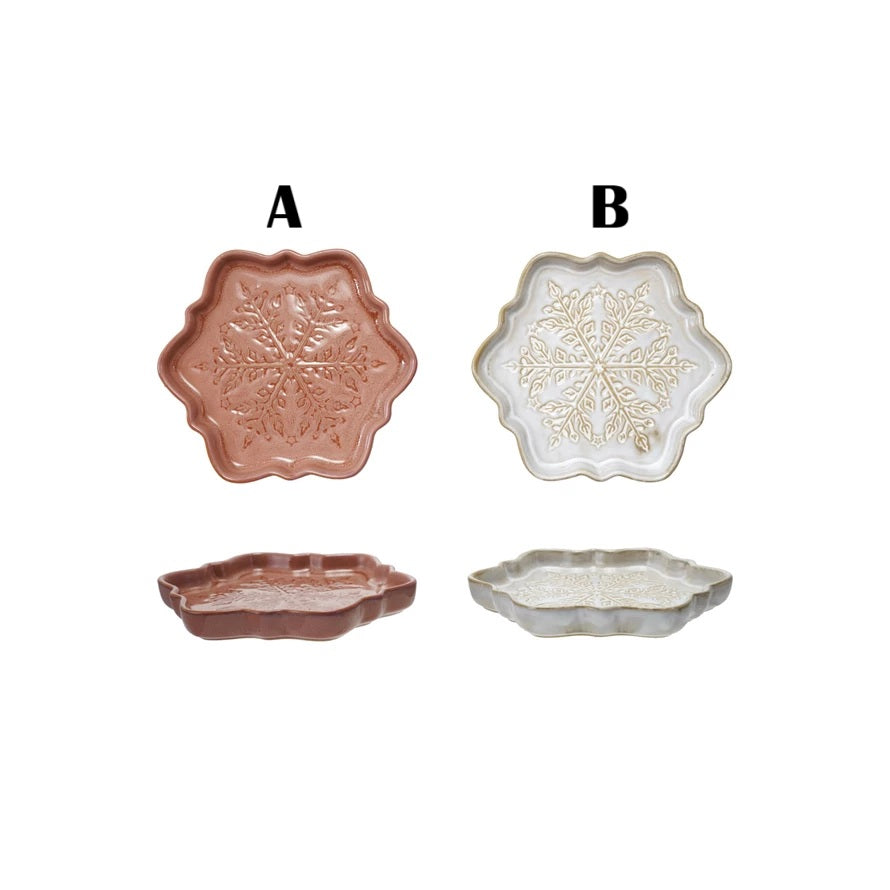 Stoneware Snowflake Shaped Plate, Reactive Glaze, 2 Color Options