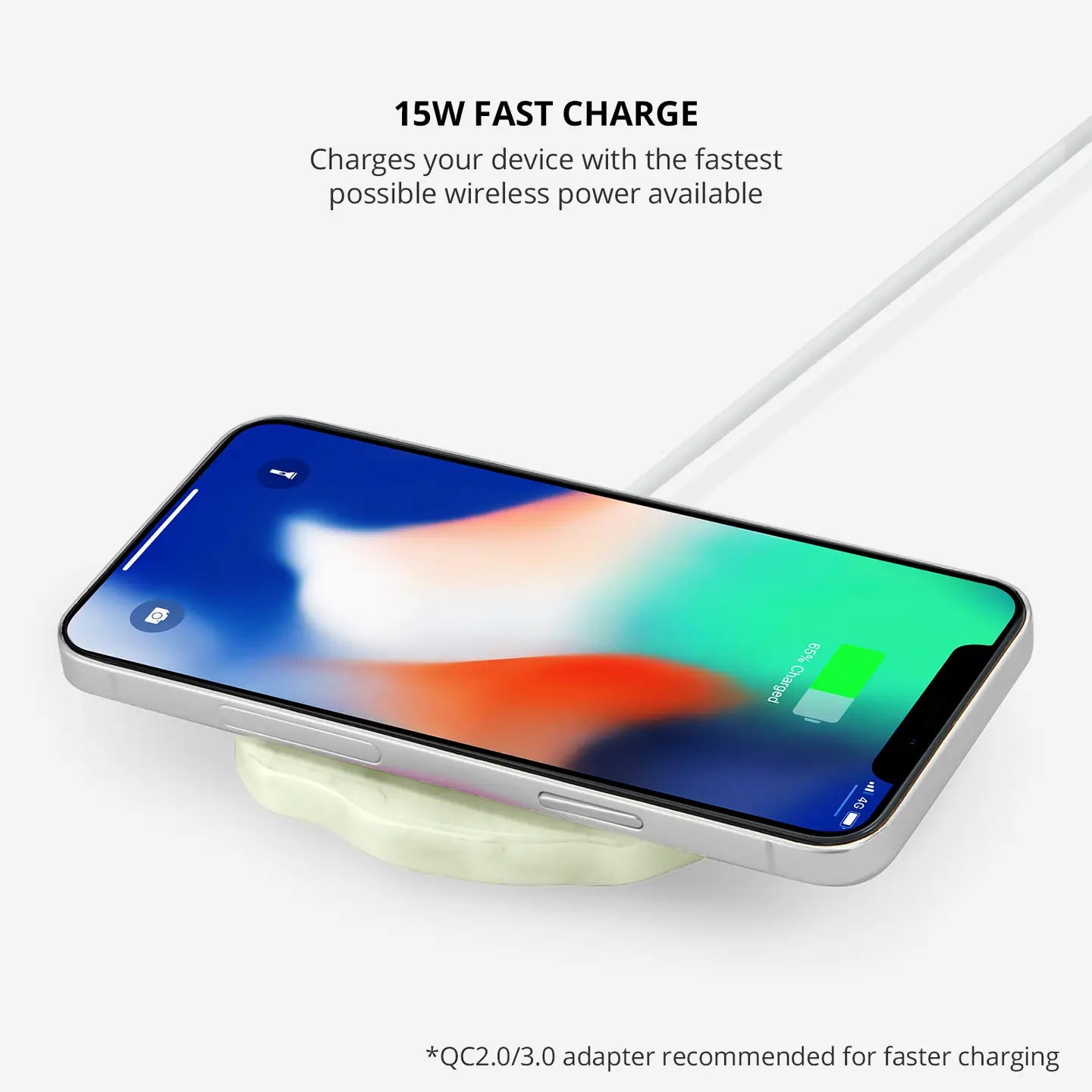 Convenient wireless charging with a touch of glam! Simply place your wireless charging compatible device (Apple, Samsung) on the charging pad for quick and easy device charging. Even works through phone cases! The sophisticated designs add a fashionable touch to your desktop or nightstand. 15W output for Fast Charging! • Input: 5V-2A / 9V-2A • Output: 7.5W / 10W / 15W • Works with wireless charging compatible devices such as Apple iPhone, Apple AirPods, Samsung Galaxy, Samsung Note, etc. • Compatible with USB-A wall adapters or power sources • Gemstone-inspired - made of beautiful and durable resin